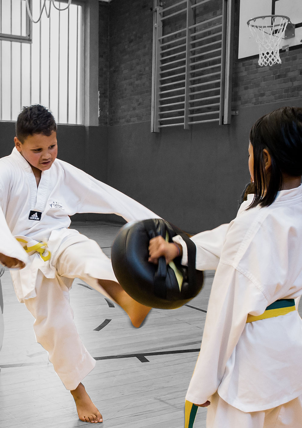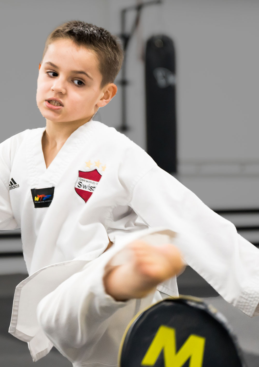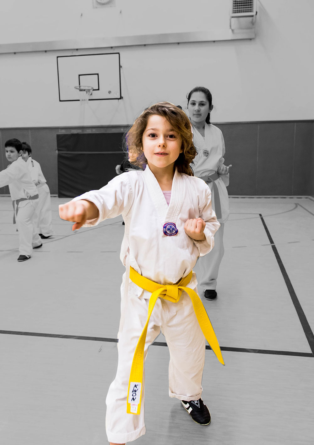 „Taekwondo hat seinen Ursprung in Korea und bedeutet wörtlich übersetzt: Weg des Fußes und der Hand. Die Schwerpunkte des Trainings können unterteilt werden in Vollkontaktwettkampf und Formenlauf. Die körperliche Beweglichkeit und das Bewusstsein entwickelt sich beim Üben.“